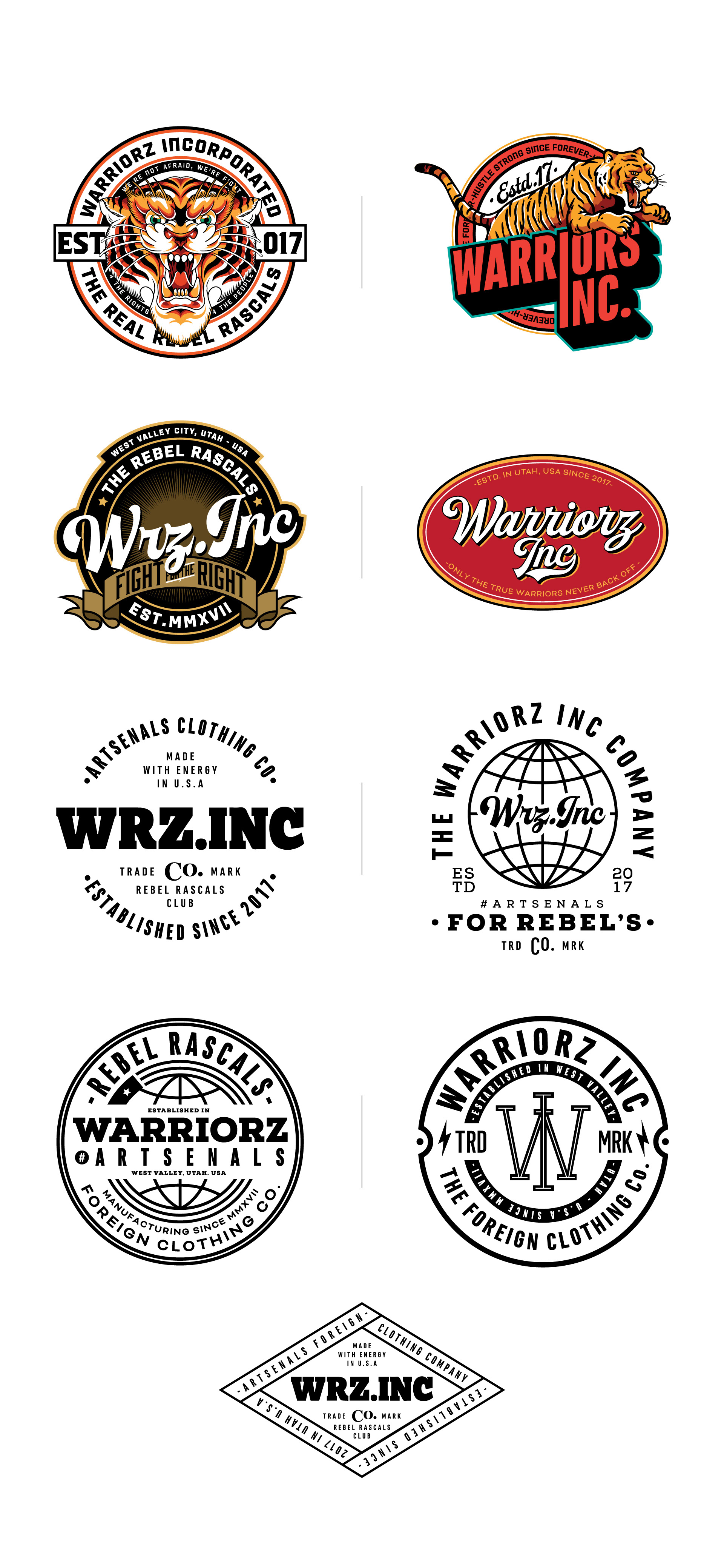 Sellos creados como parte de la primera colección de gorras, camisetas y hoodies de la marca Warriorz Inc.